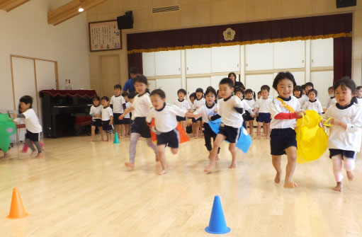 友だちや保育者、様々な人との交流を通して人とかかわることの楽しさを味わい、きまりの大切さに気づいて、守ろうとする力を育てます。