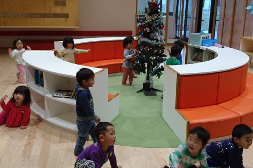 園児は0歳から5歳児までの定員一一0名です。現在一二五名の園児が在籍しています。園舎は広々とした室内空間と採光に配慮した明るい園舎で「あつまれホール」には、子ども達の好奇心をくすぐるロフトが設置されています。お隣の高齢者施設アクティブ津ノ井も和モダンを基調とするおしゃれな空間になっており、毎日20名程度の利用者が園庭で遊ぶ子どもたちを見守りながらトレーニングを楽しむ事が出来ます。