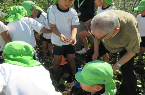 身近な自然や環境と触れ合いの中で様々な事象に興味・関心をもち好奇心や探求心、自らかんがえようとする力を育てます。